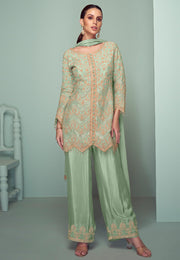 Pista Green Chinon Embroidered Palazzo Suit