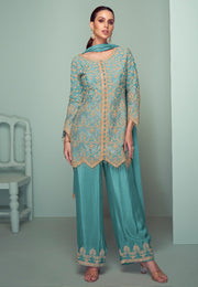 Sky Blue Chinon Embroidered Pakistani Suit