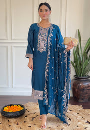 Navy Blue Viscose Rayon Readymade Pakistani Suit