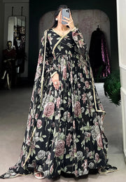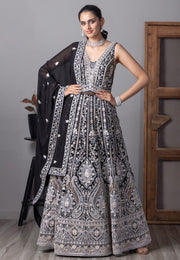 Black Georgette Readymade Long Anarkali Suit