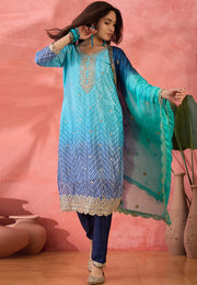 Blue Chinon Silk Readymade Pakistani Suit