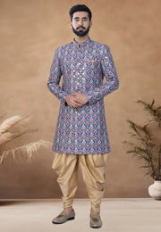 Blue Cotton Indo Western Suit