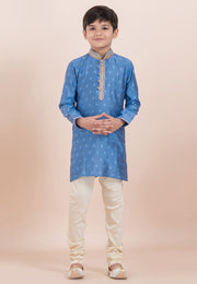Blue Cotton Jacquard Kids Kurta Pajama