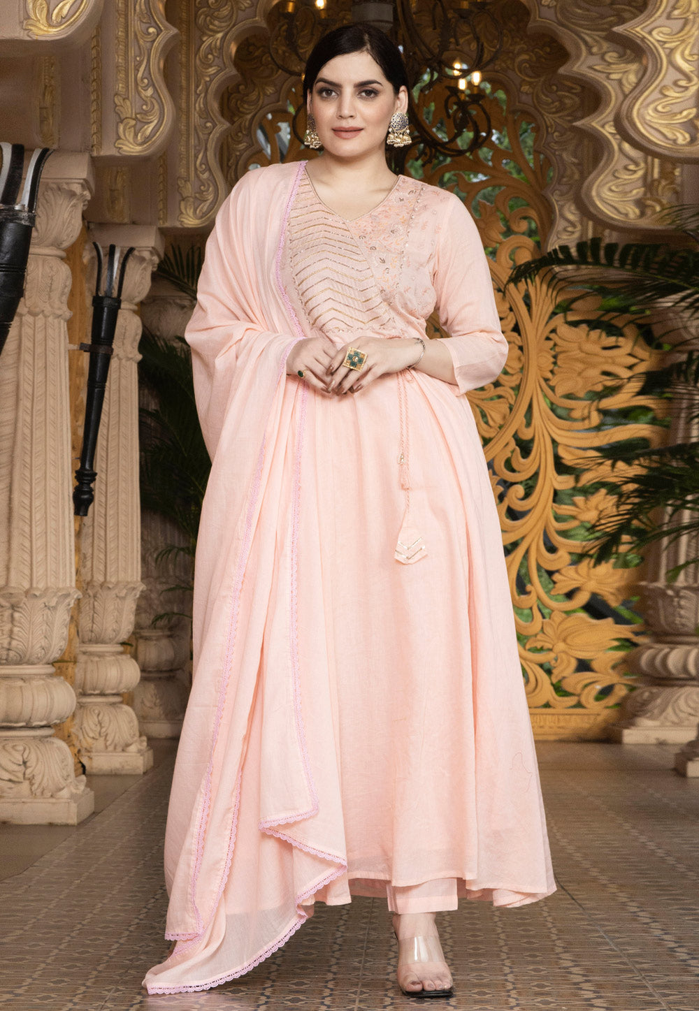 Brown Cotton Readymade Center Slit Anarkali Suit