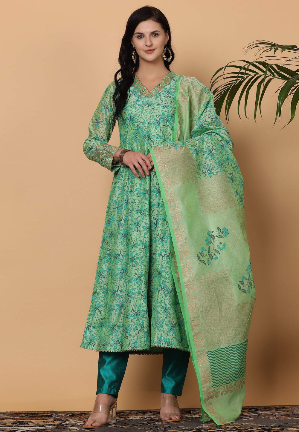 Mehndi Georgette Embroidered Center Slit Anarkali Suit