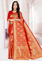 Red Banarasi Silk Saree With Blouse