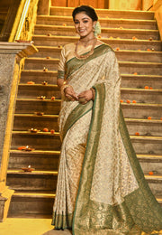 Green Banarasi Silk Saree With Blouse