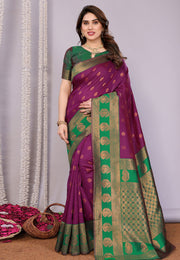 Magenta Banarasi Silk Saree