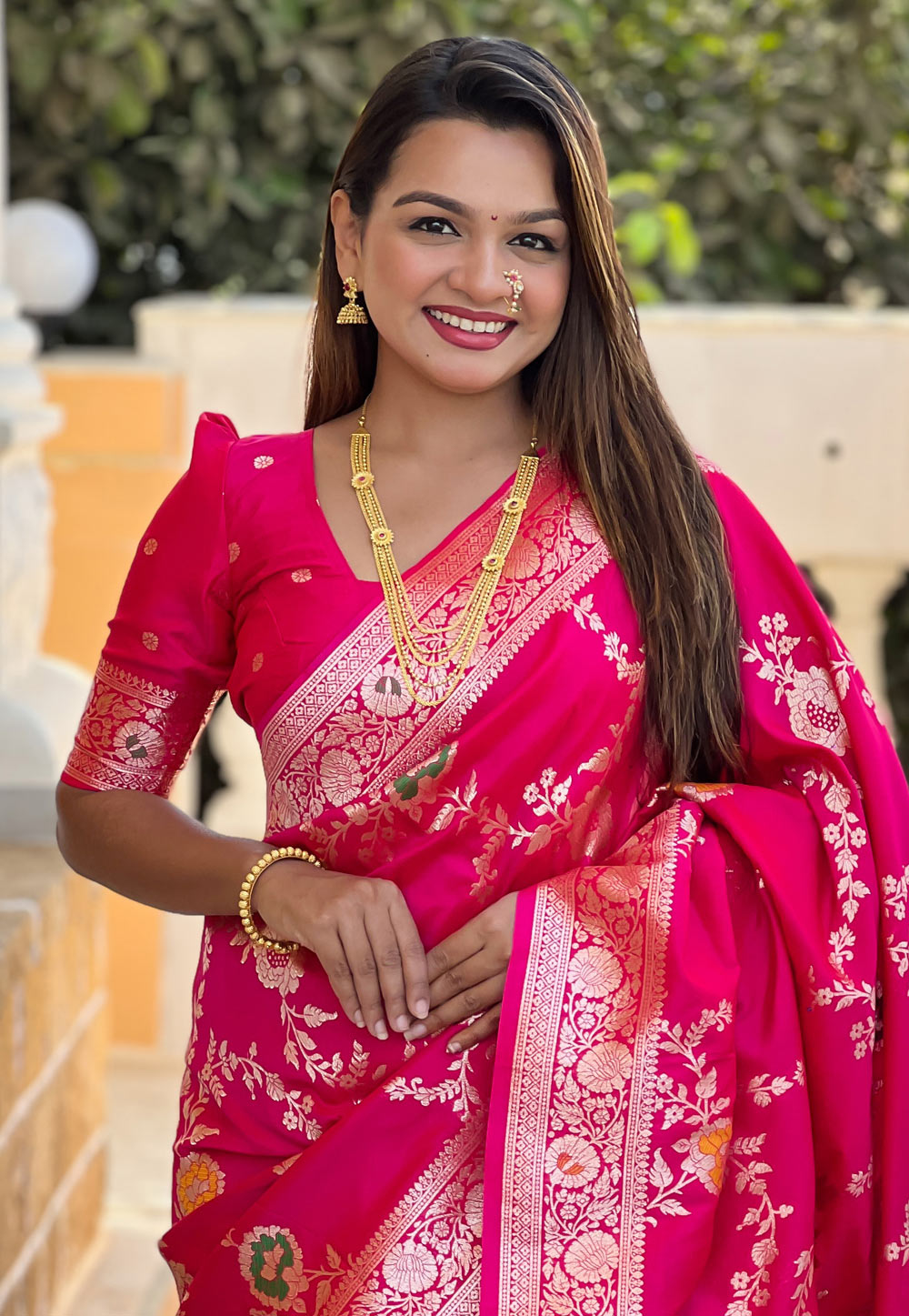 Magenta Banarasi Silk Saree