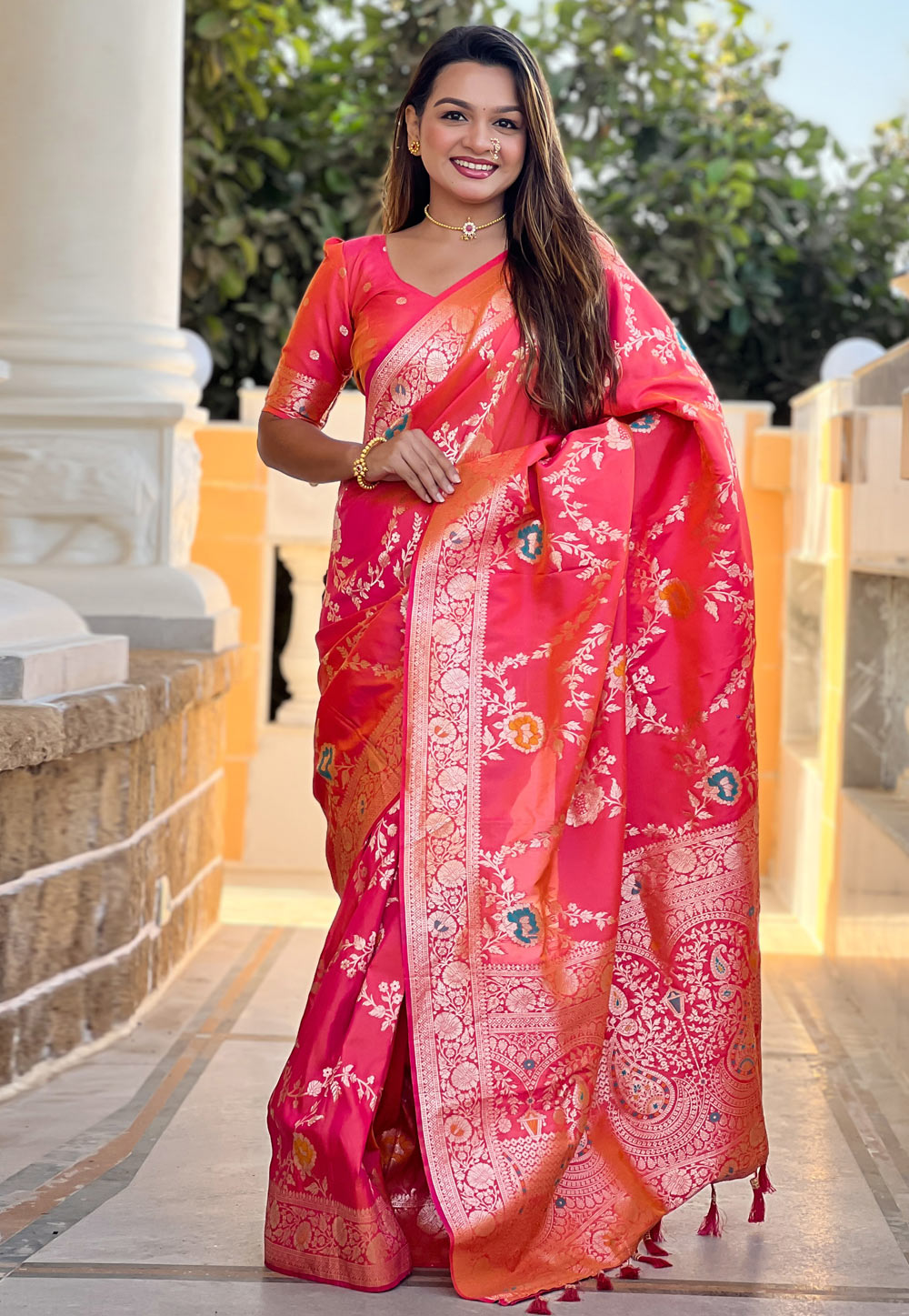 Pink Banarasi Silk Saree