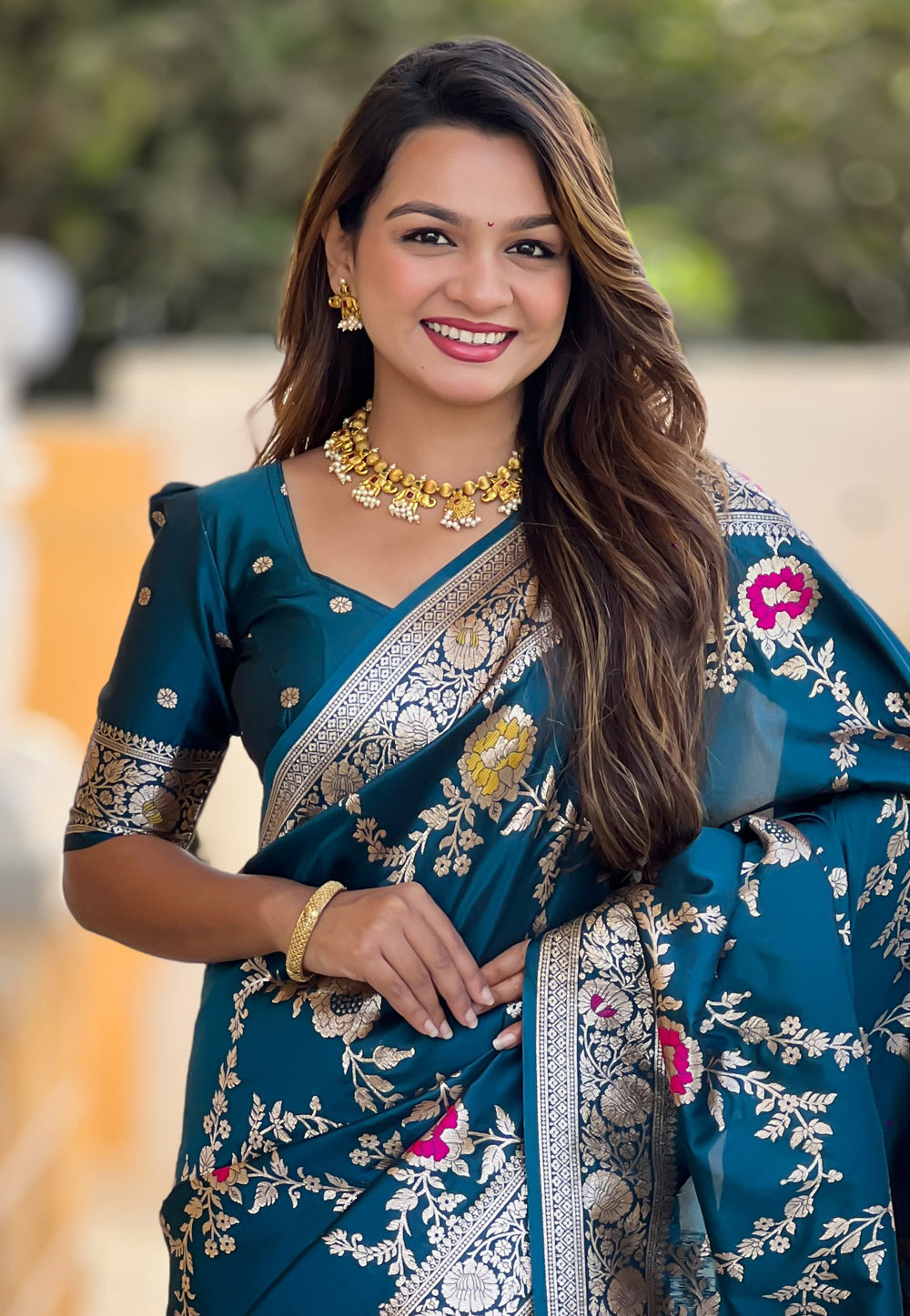 Teal Banarasi Silk Saree