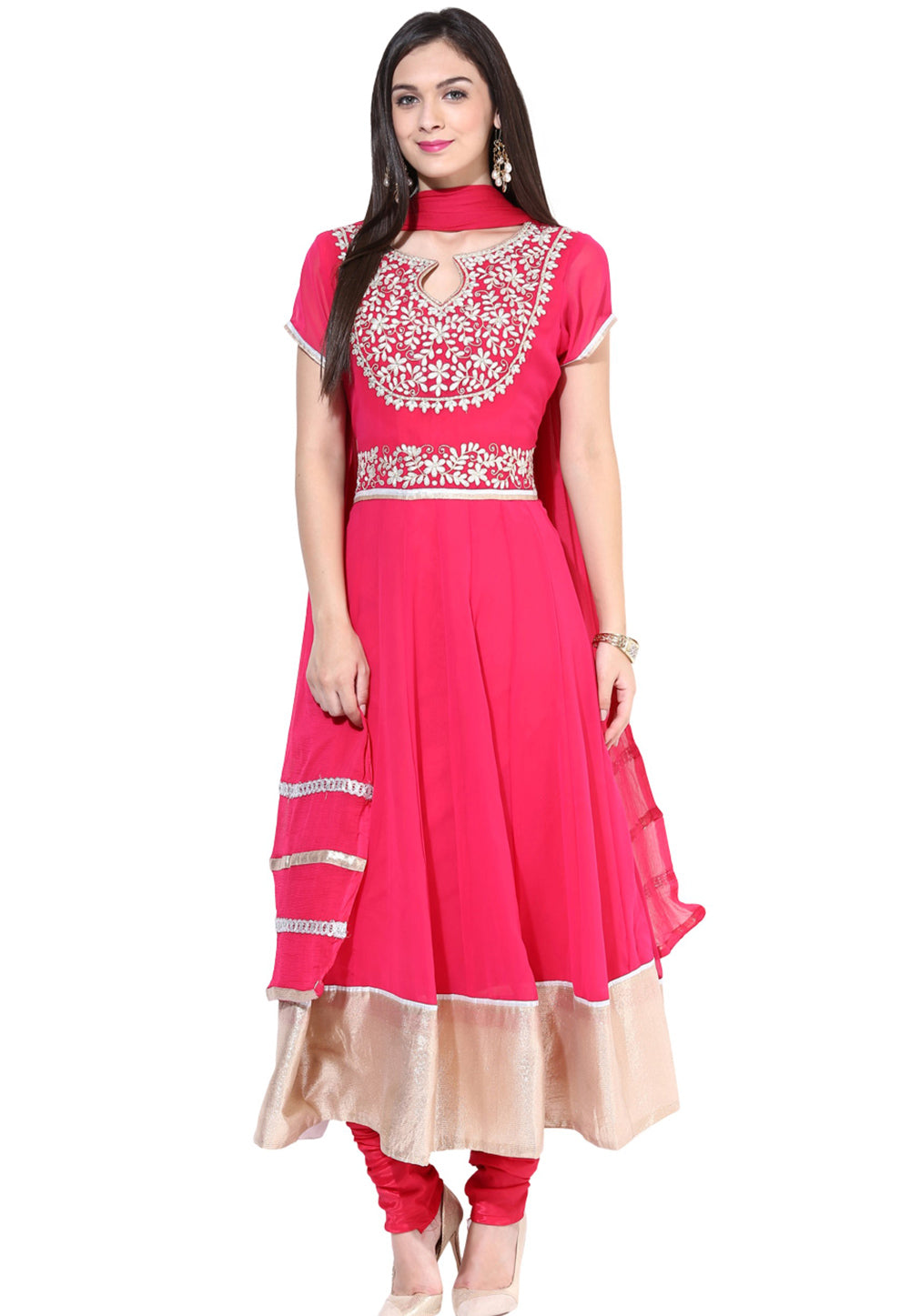 Pink Georgette Readymade Churidar Suit