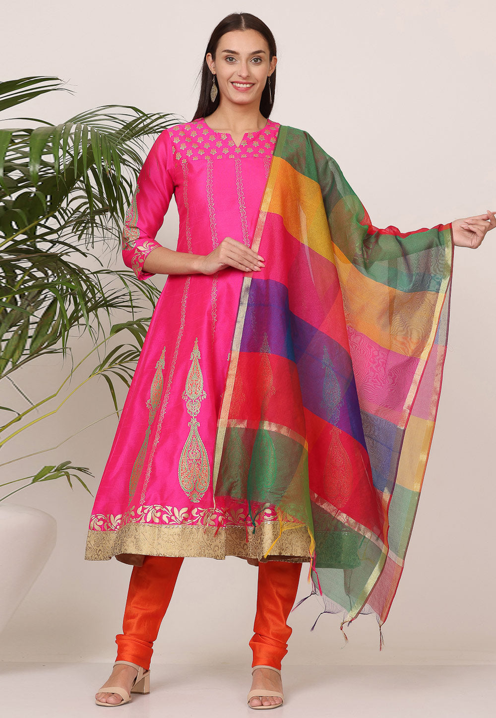 Pink Silk Readymade Churidar Salwar Suit