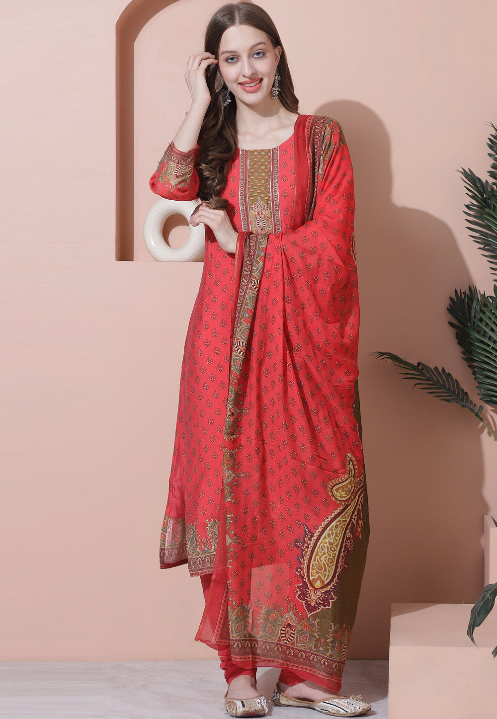 Red Muslin Churidar Suit