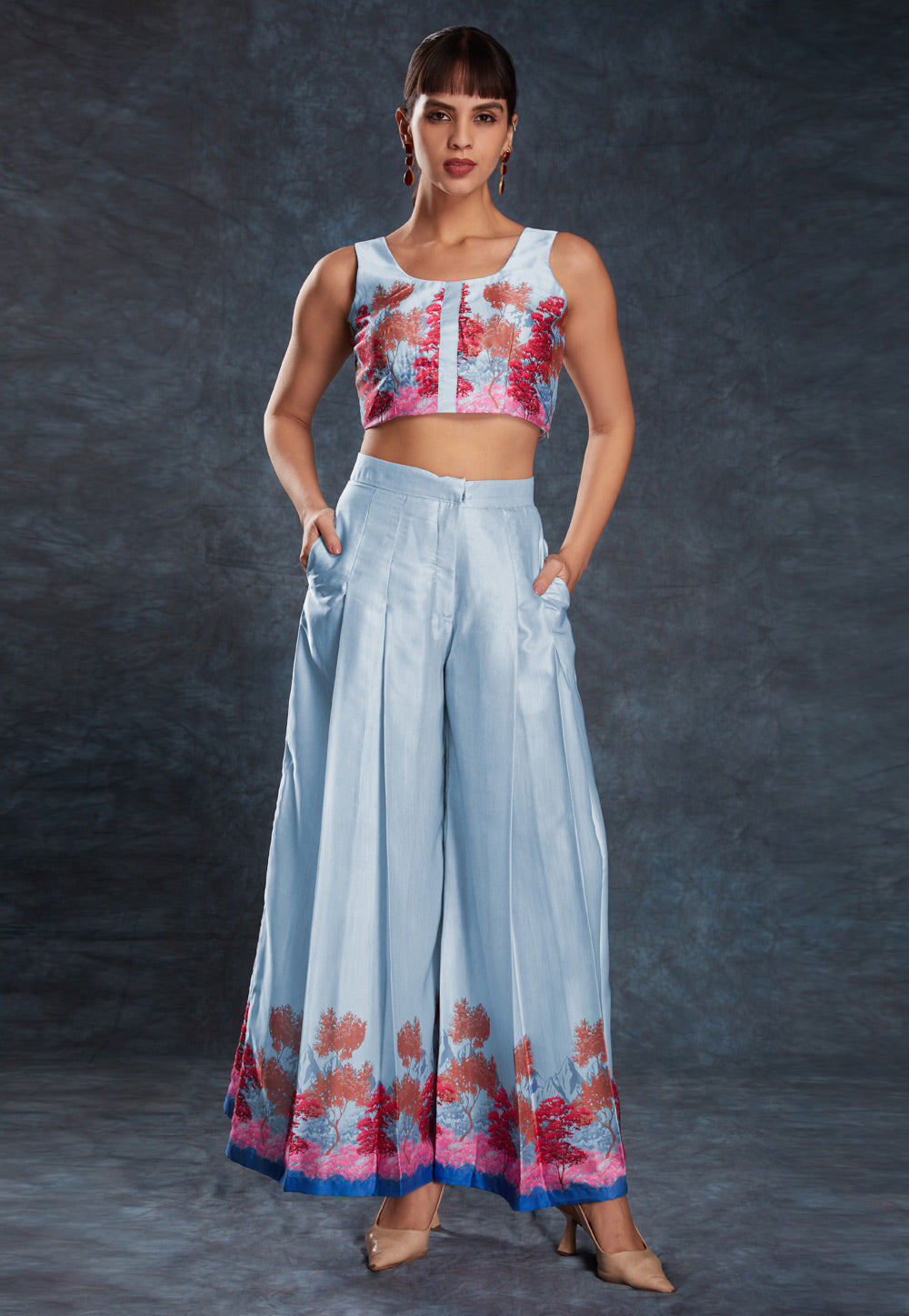 Sky Blue Linen Printed Co-Ords Set