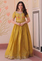 Load image into Gallery viewer, Mustard Art Silk Gown