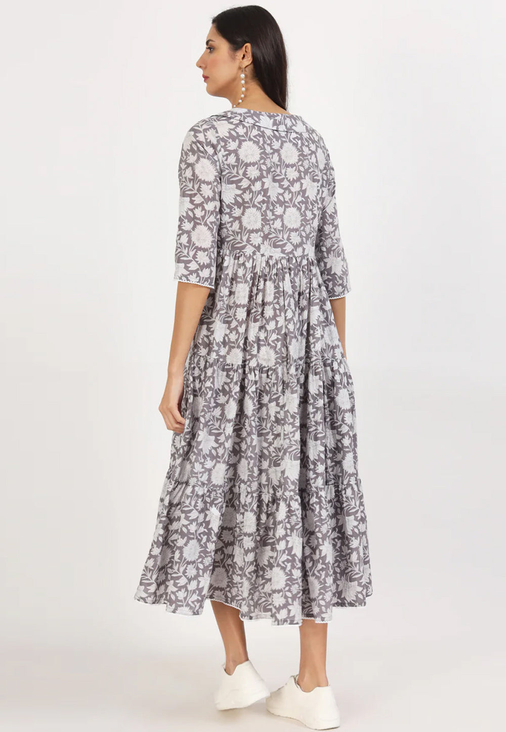 Grey Cotton Printed Gown