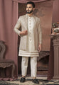 Load image into Gallery viewer, Beige Jacquard Jacket Style Sherwani