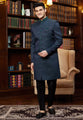 Navy Blue Jacquard Silk Indo Western Sherwani