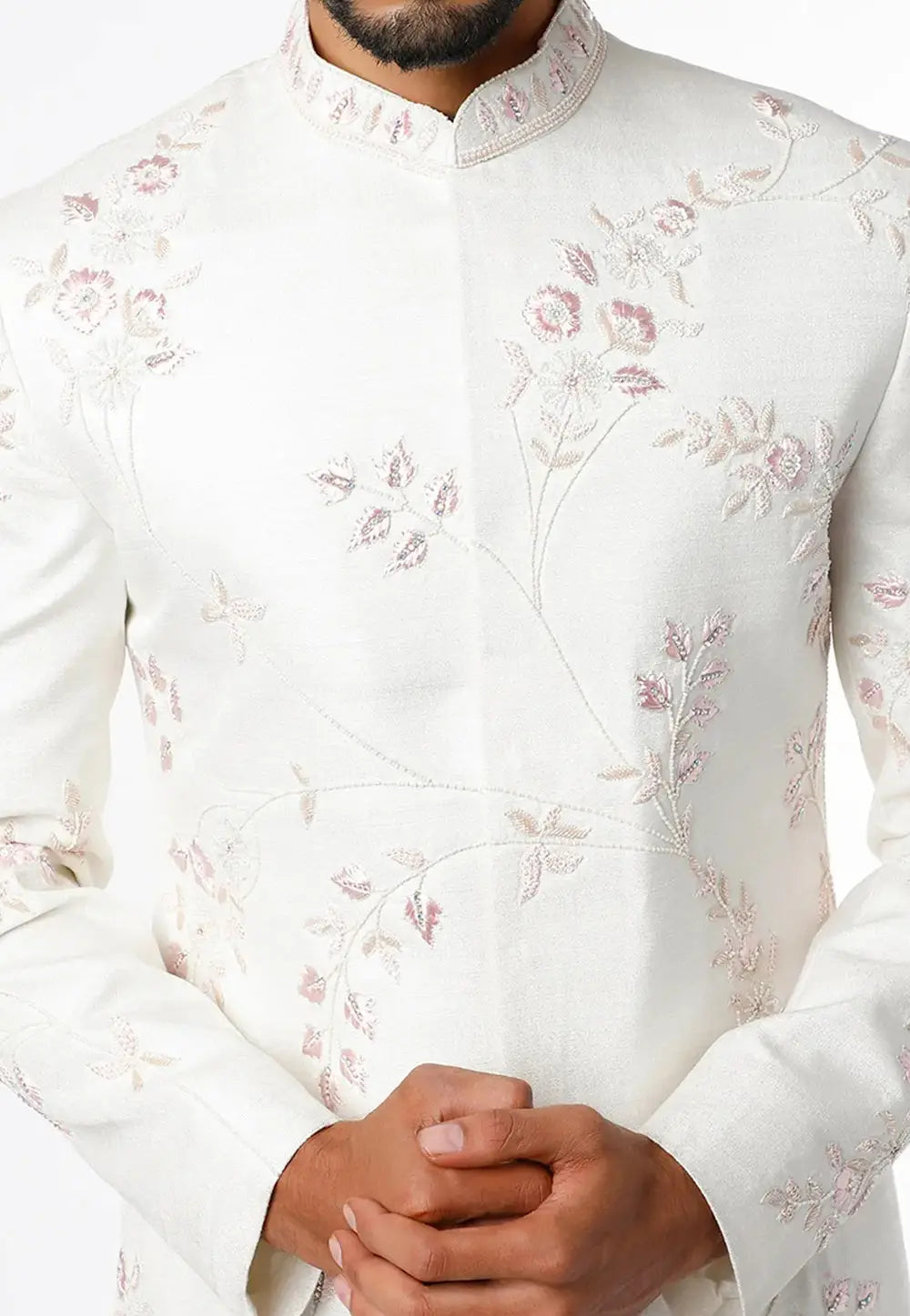 Cream Silk Indo Western Sherwani