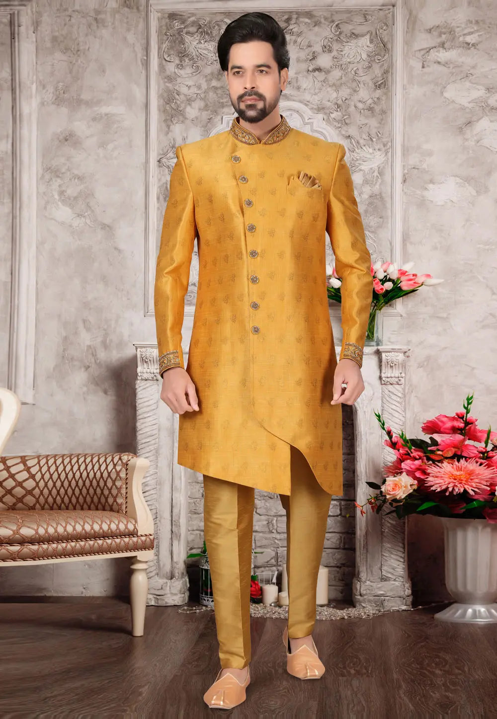Golden Jacquard Indo Western Sherwani