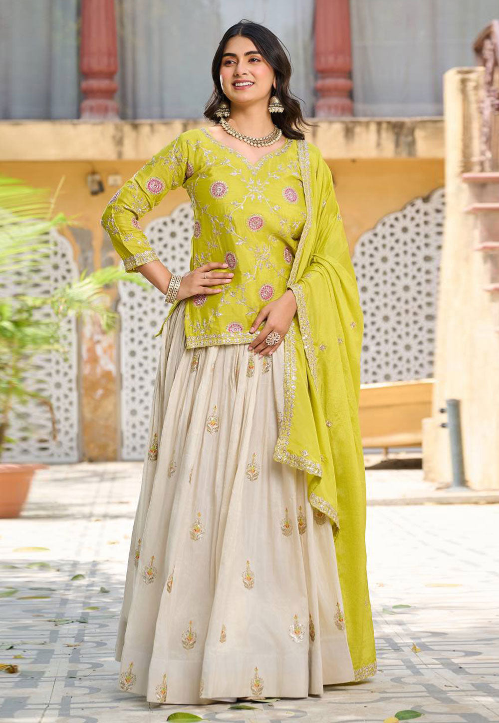 Light Green Tissue Silk Readymade Long Choli Lehenga