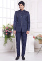 Navy Blue Jacquard Silk Jodhpuri Suit