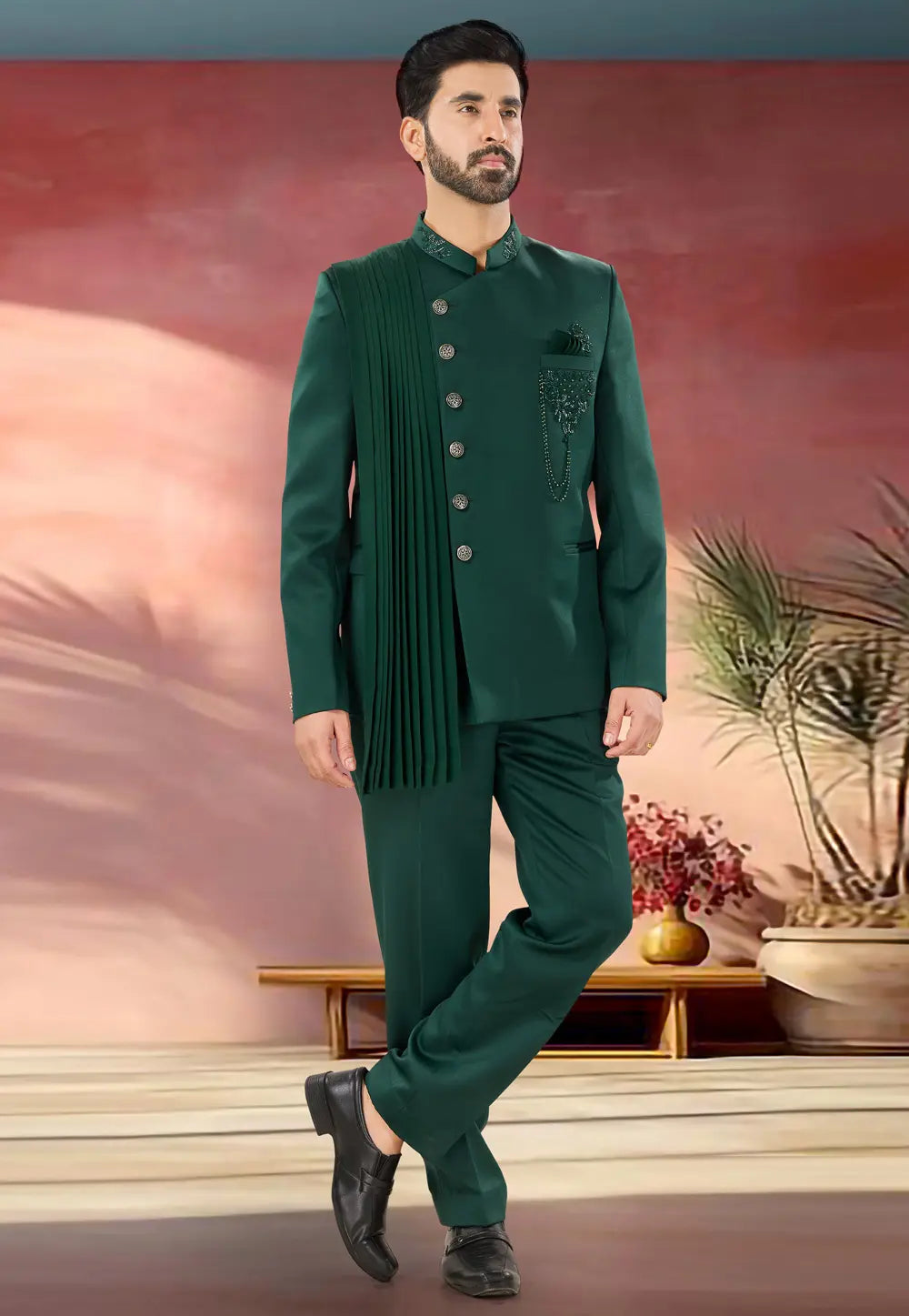 Green Velvet Jodhpuri Suit