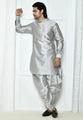 Load image into Gallery viewer, Grey Art Silk Dhoti Kurta