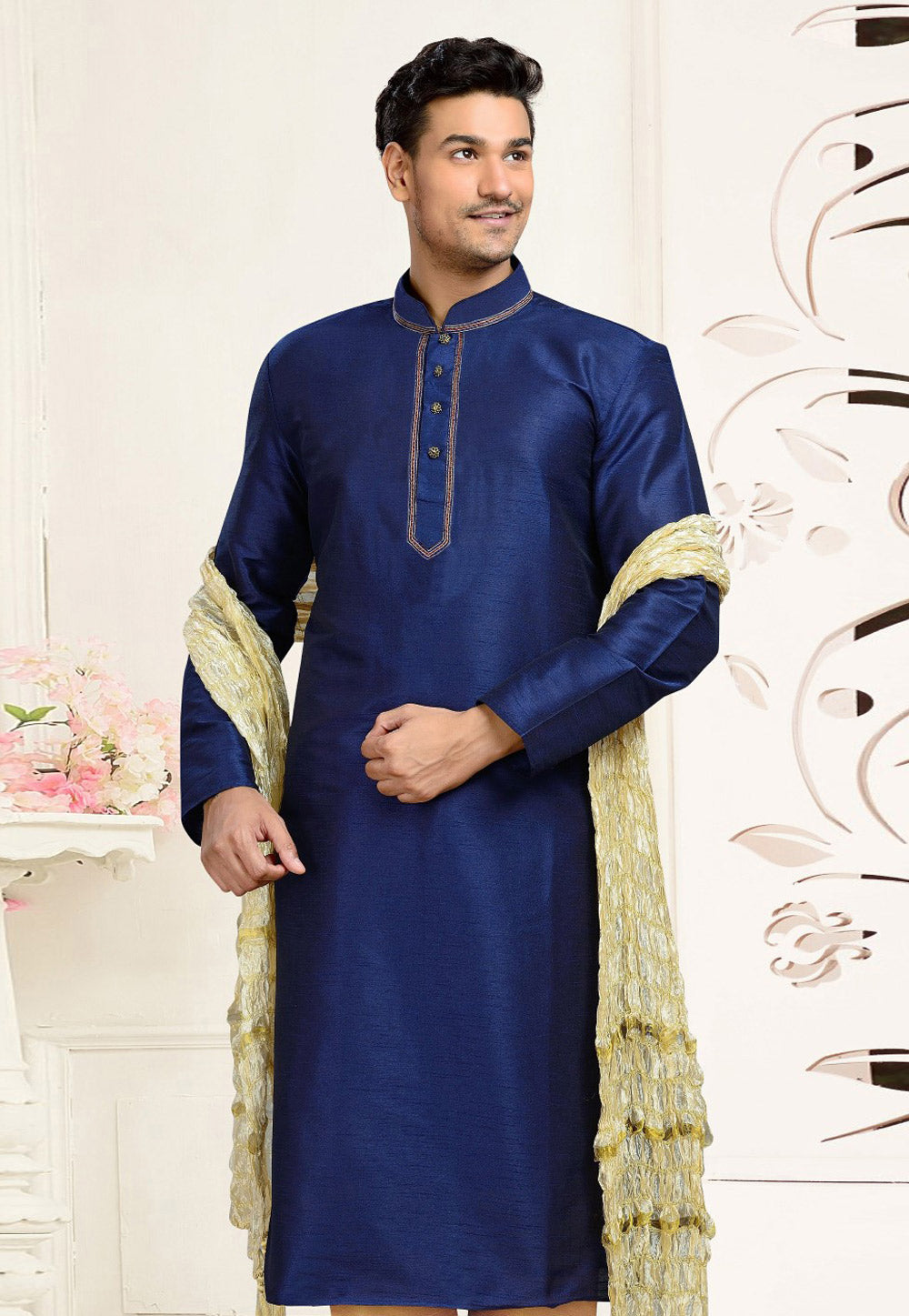 Navy Blue Dupion Silk Kurta Pajama
