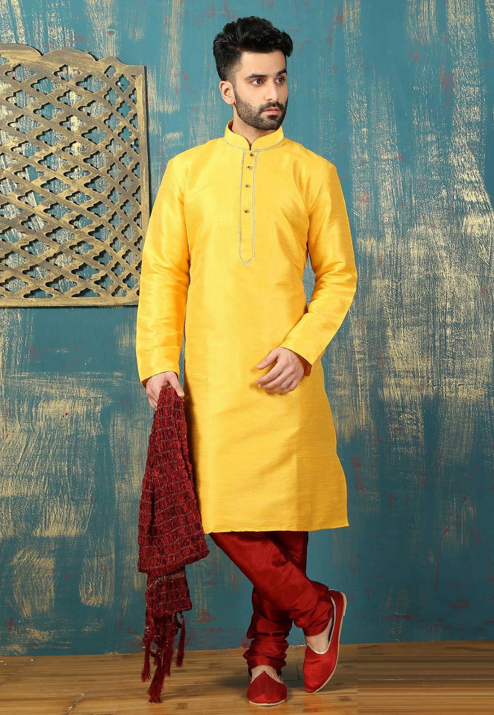 Yellow Dupion Silk Kurta Pajama