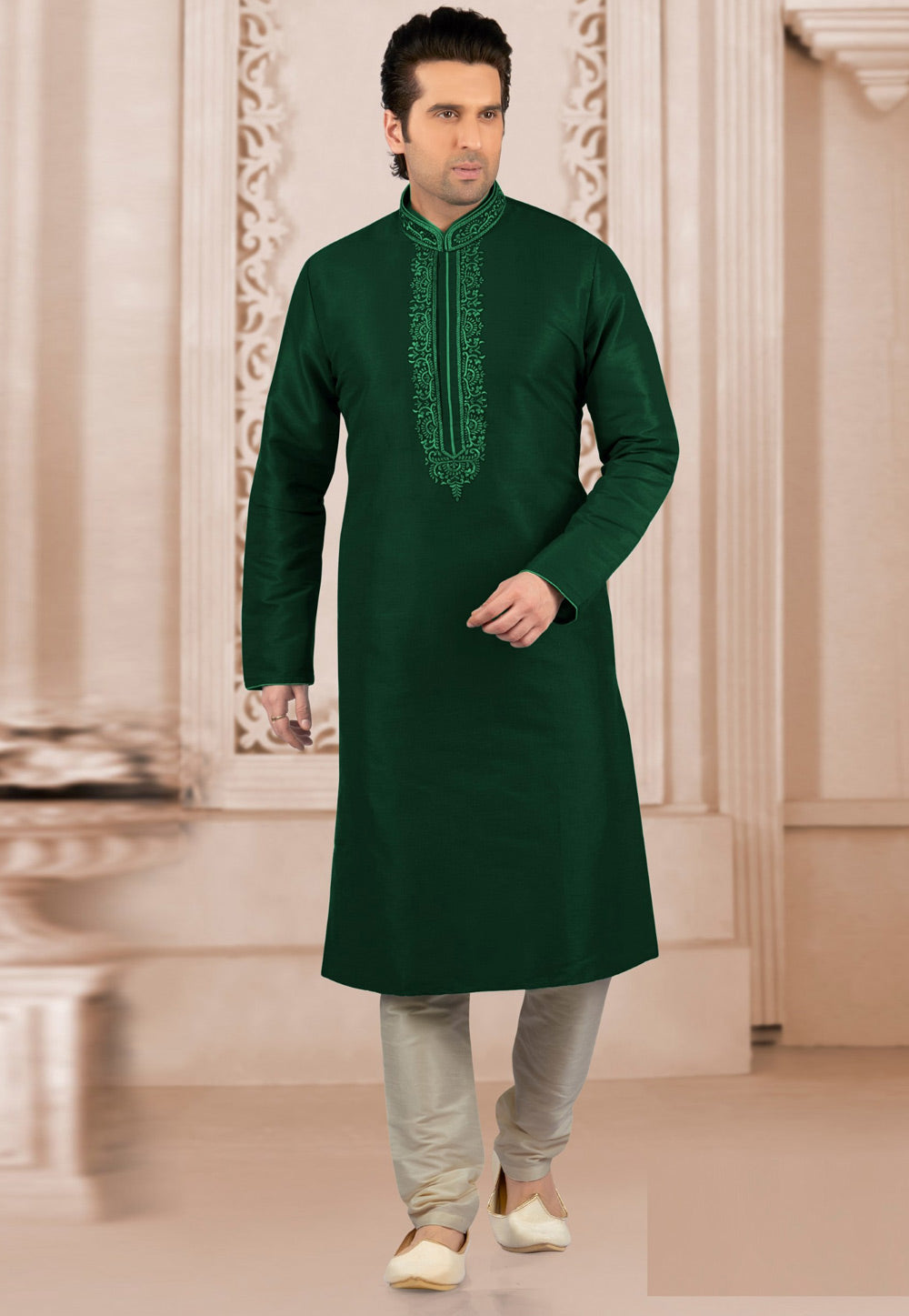 Green Dupion Silk Kurta Pajama