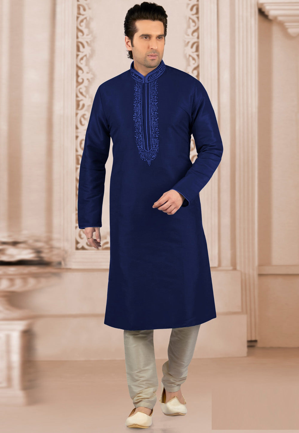 Navy Blue Dupion Silk Kurta Pajama