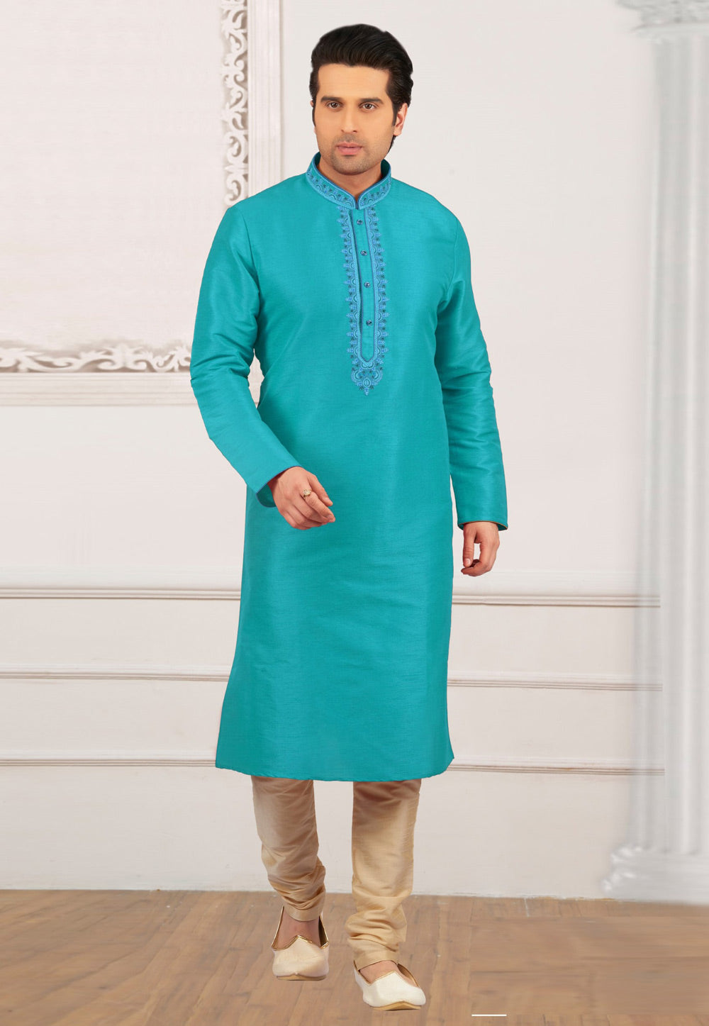 Aqua Dupion Silk Kurta Pajama