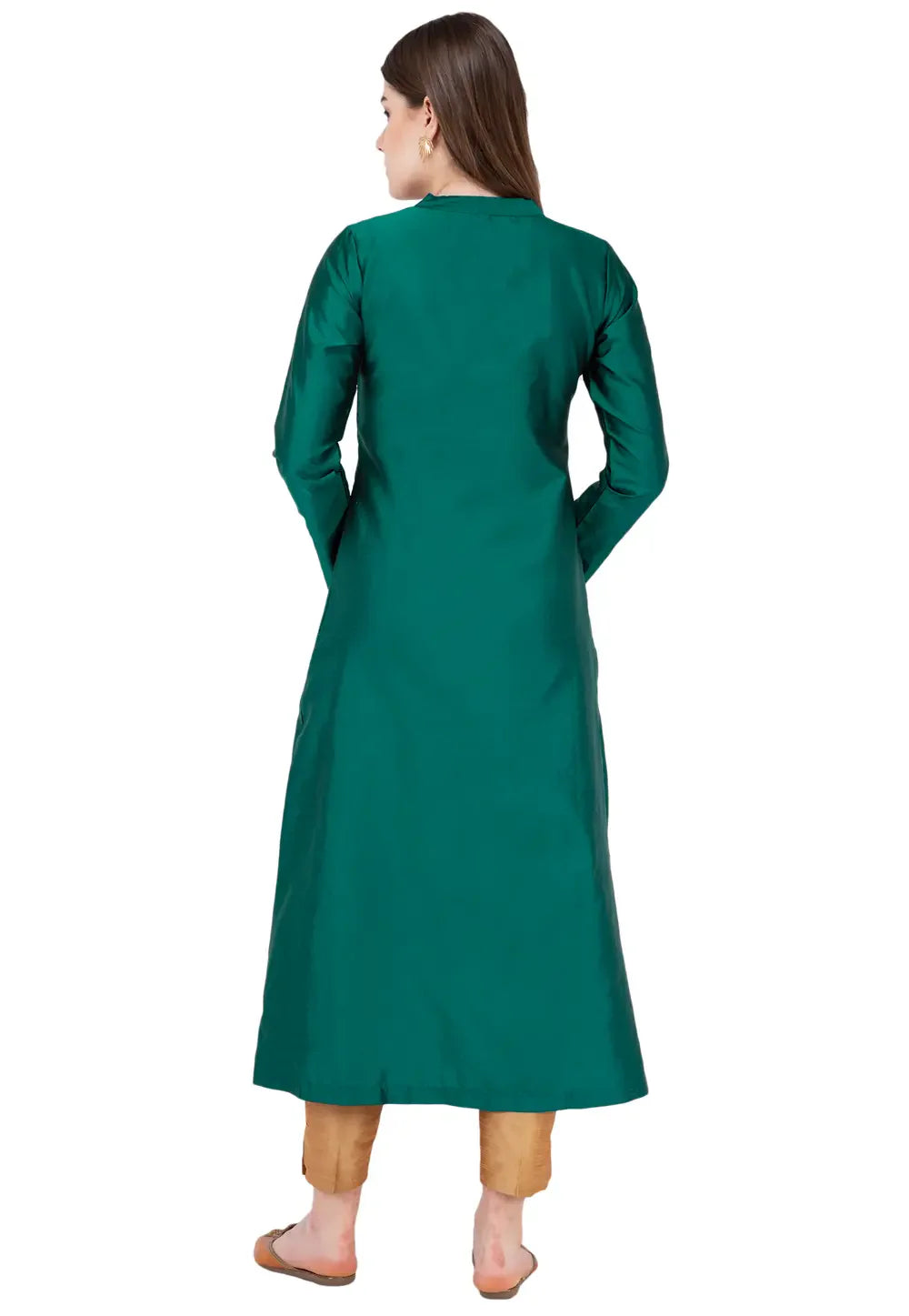 Green Art Silk Kurta Set With Pent