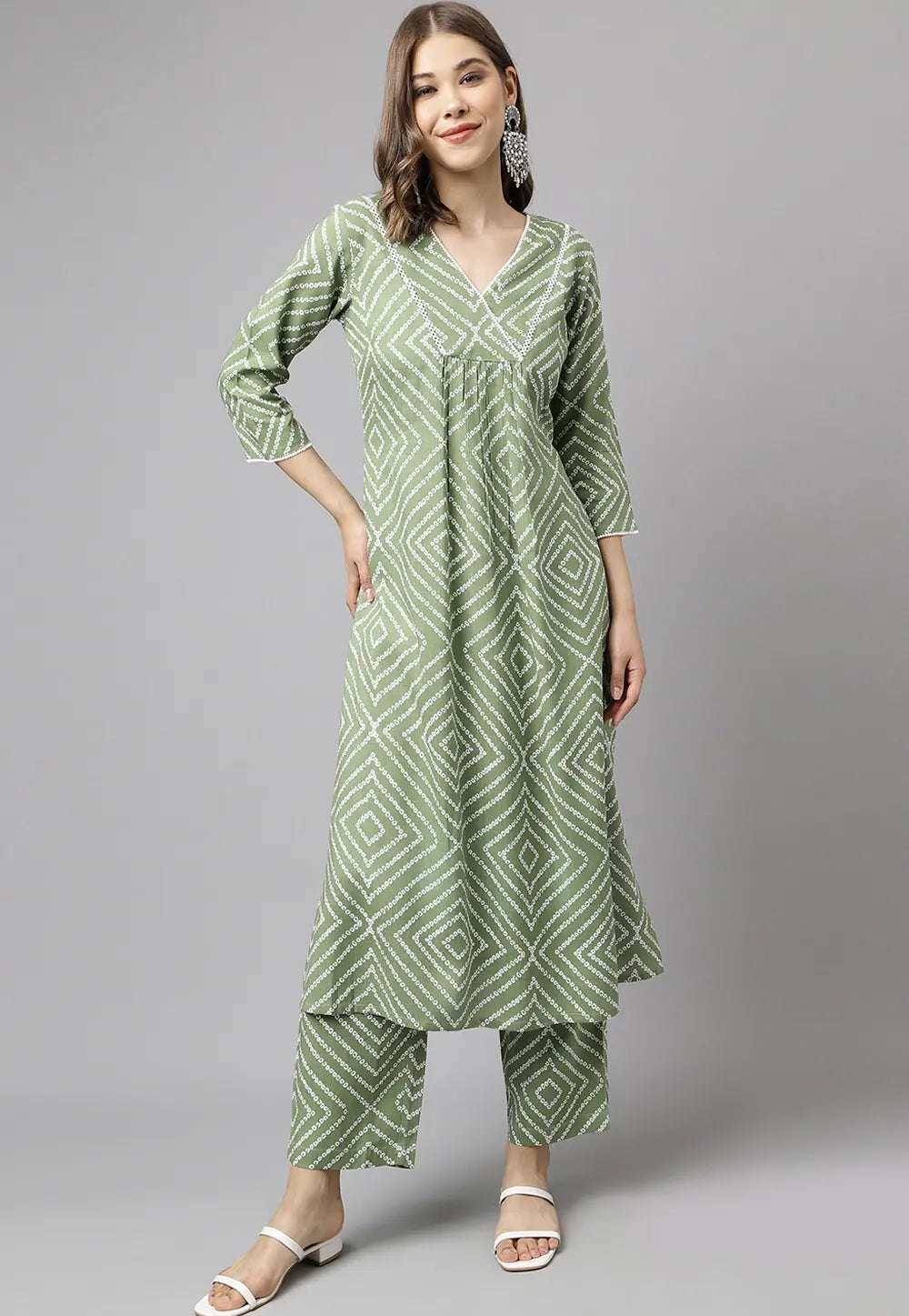 Green Cotton Kurta Set With Pent