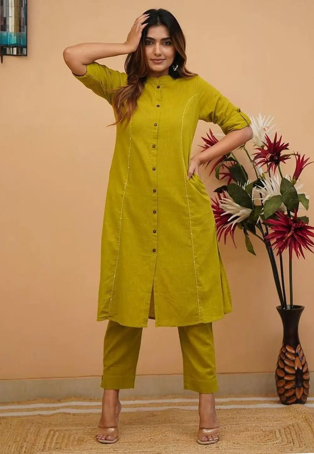 Light Green Cotton Kurta Set With Pent