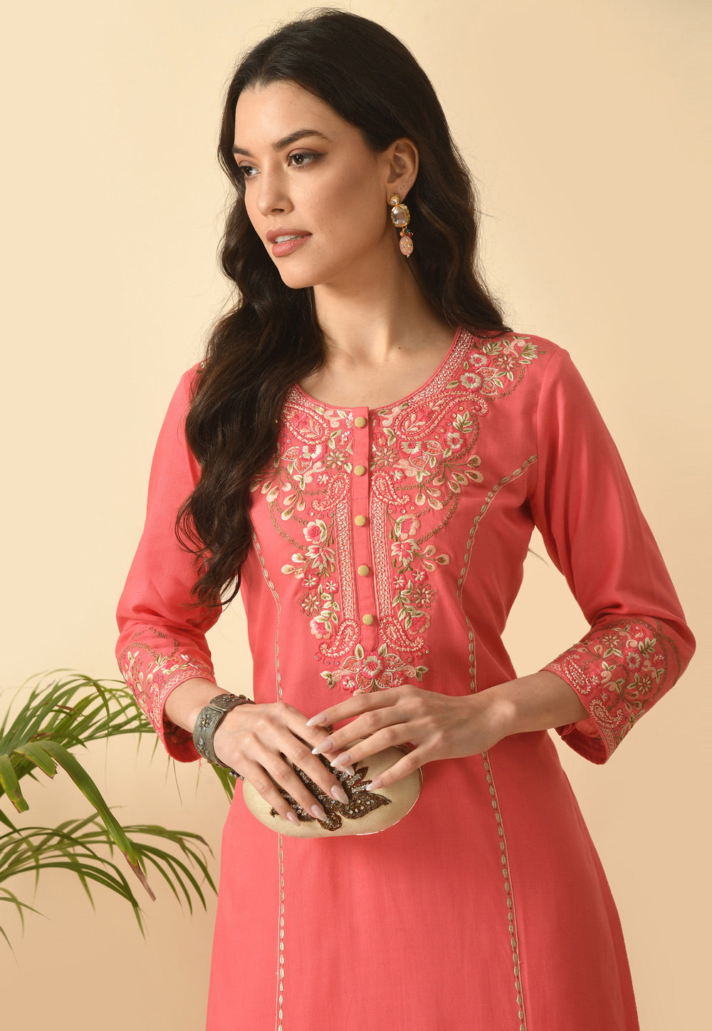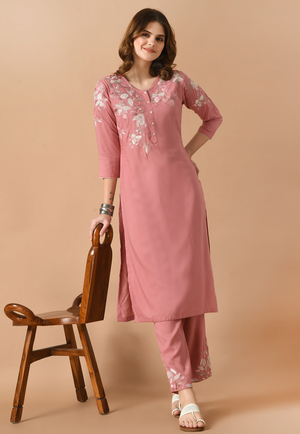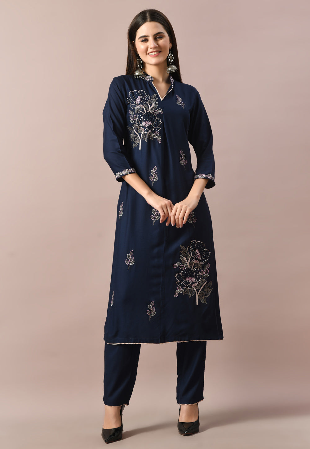 Navy Blue Cotton Rayon Kurta Set With Pent