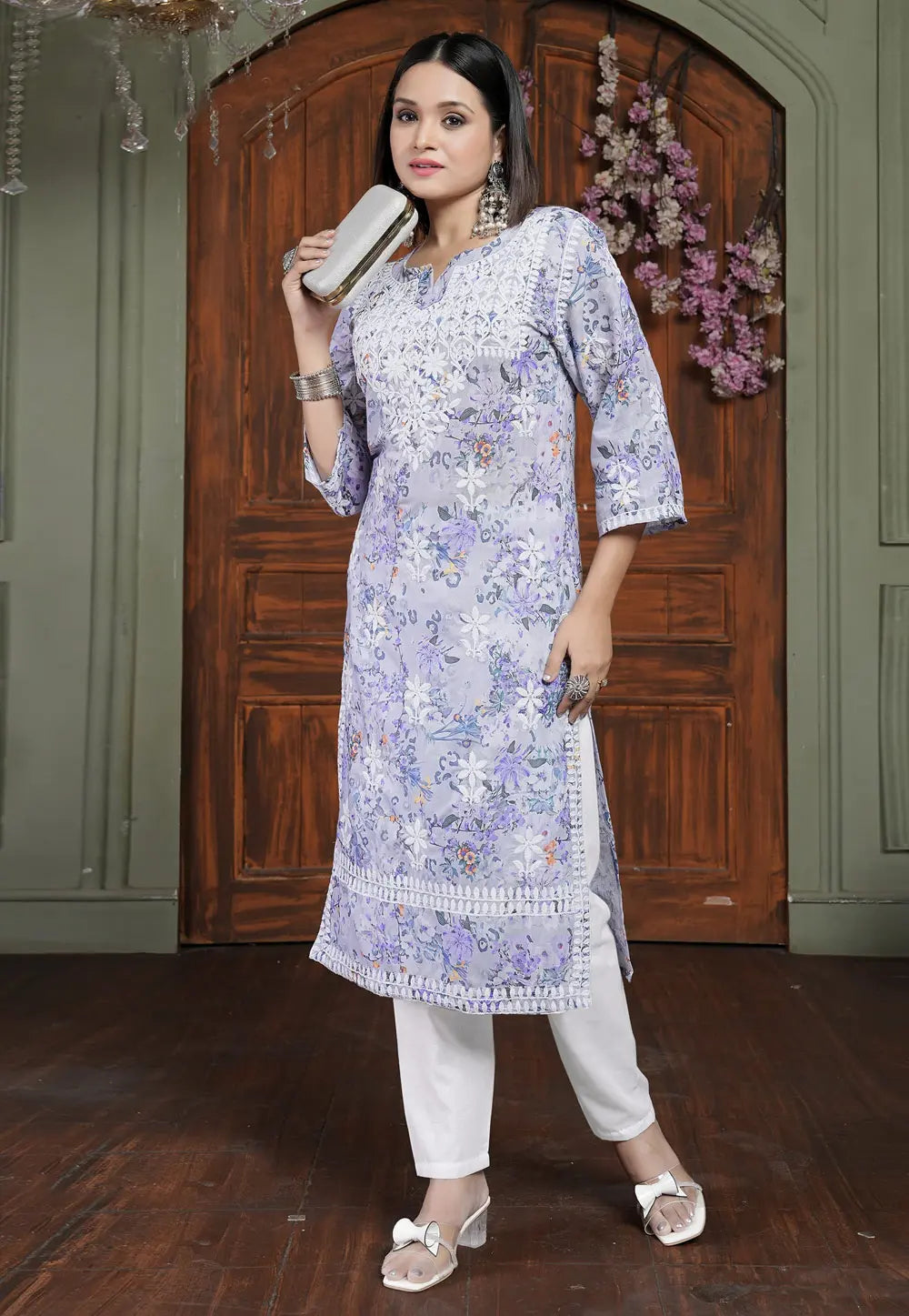 Lavender Cotton Kurta Set With Pent