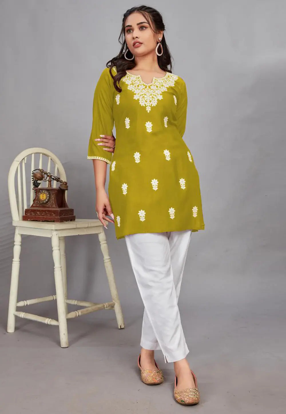 Olive Green Rayon Short Kurti