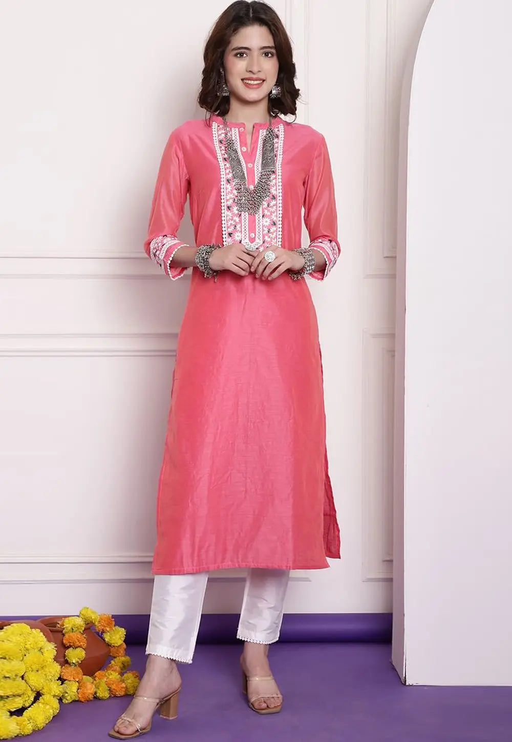 Pink Chanderi Long Kurti