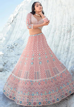 Peach Georgette A Line Lehenga Choli