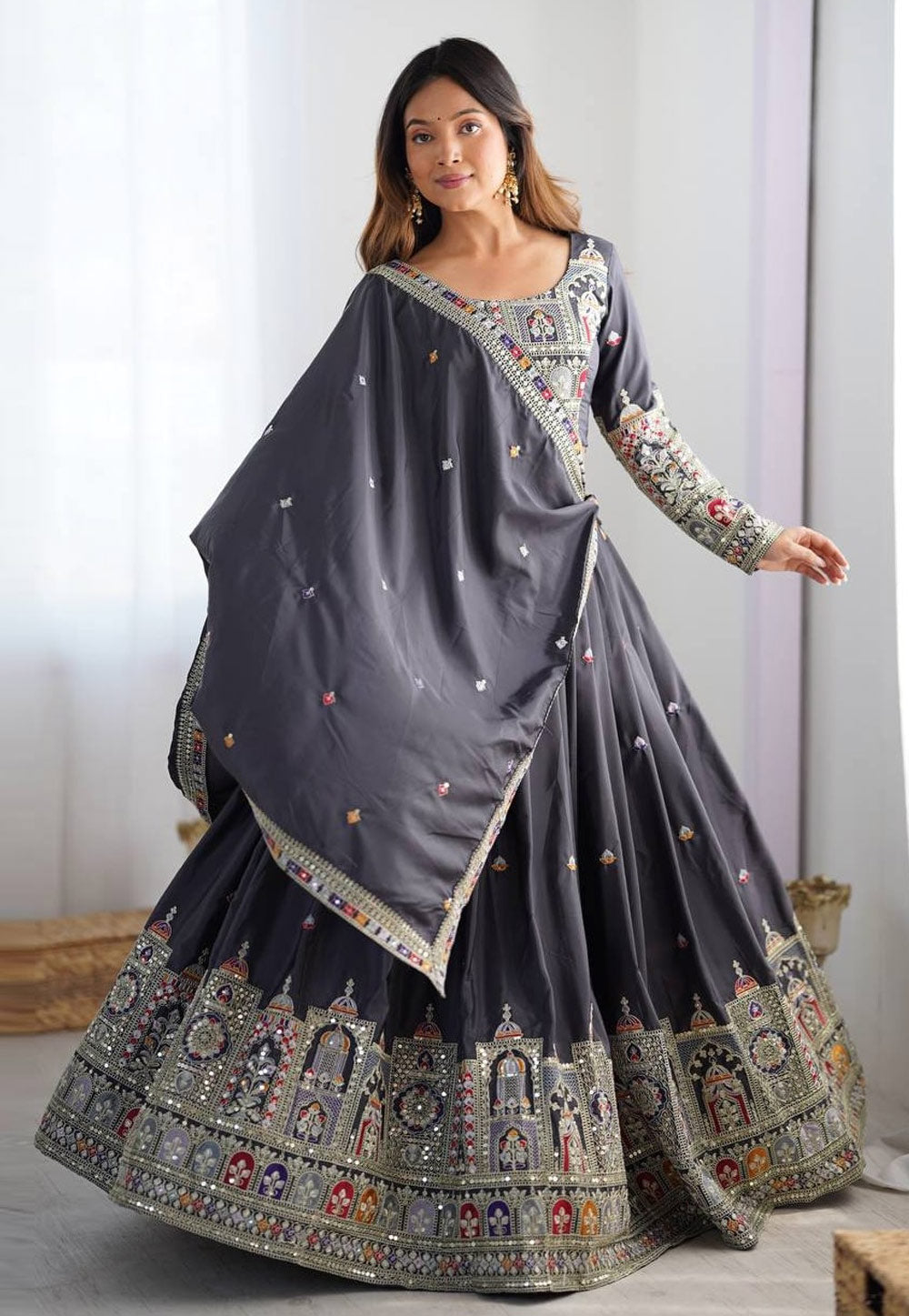 Grey Silk Circular Lehenga Choli