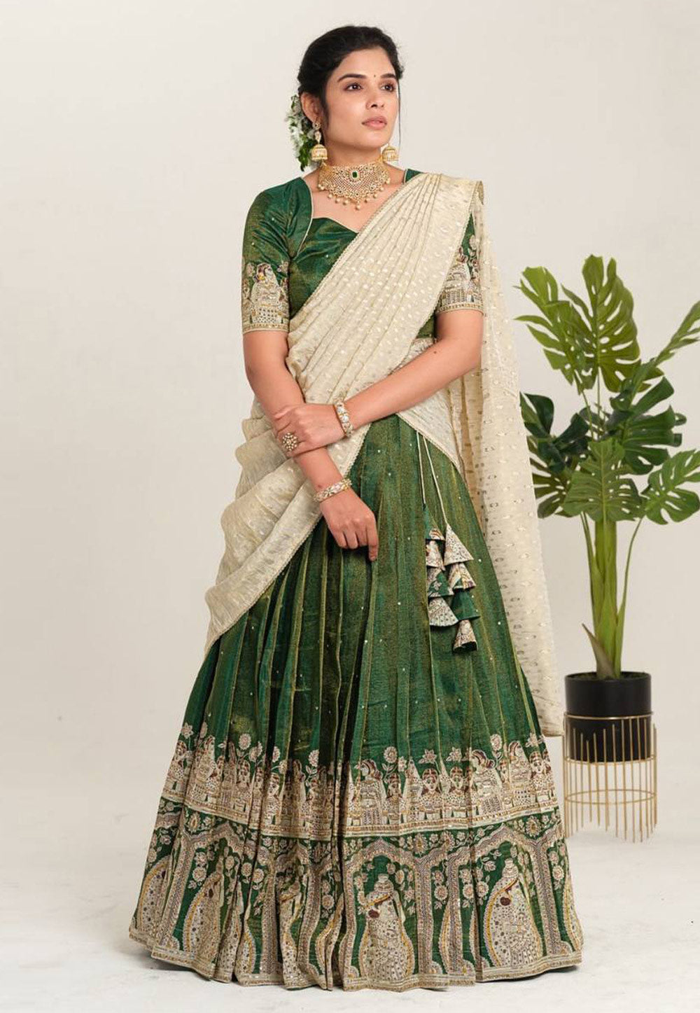 Green Crepe Readymade Circular Lehenga Choli
