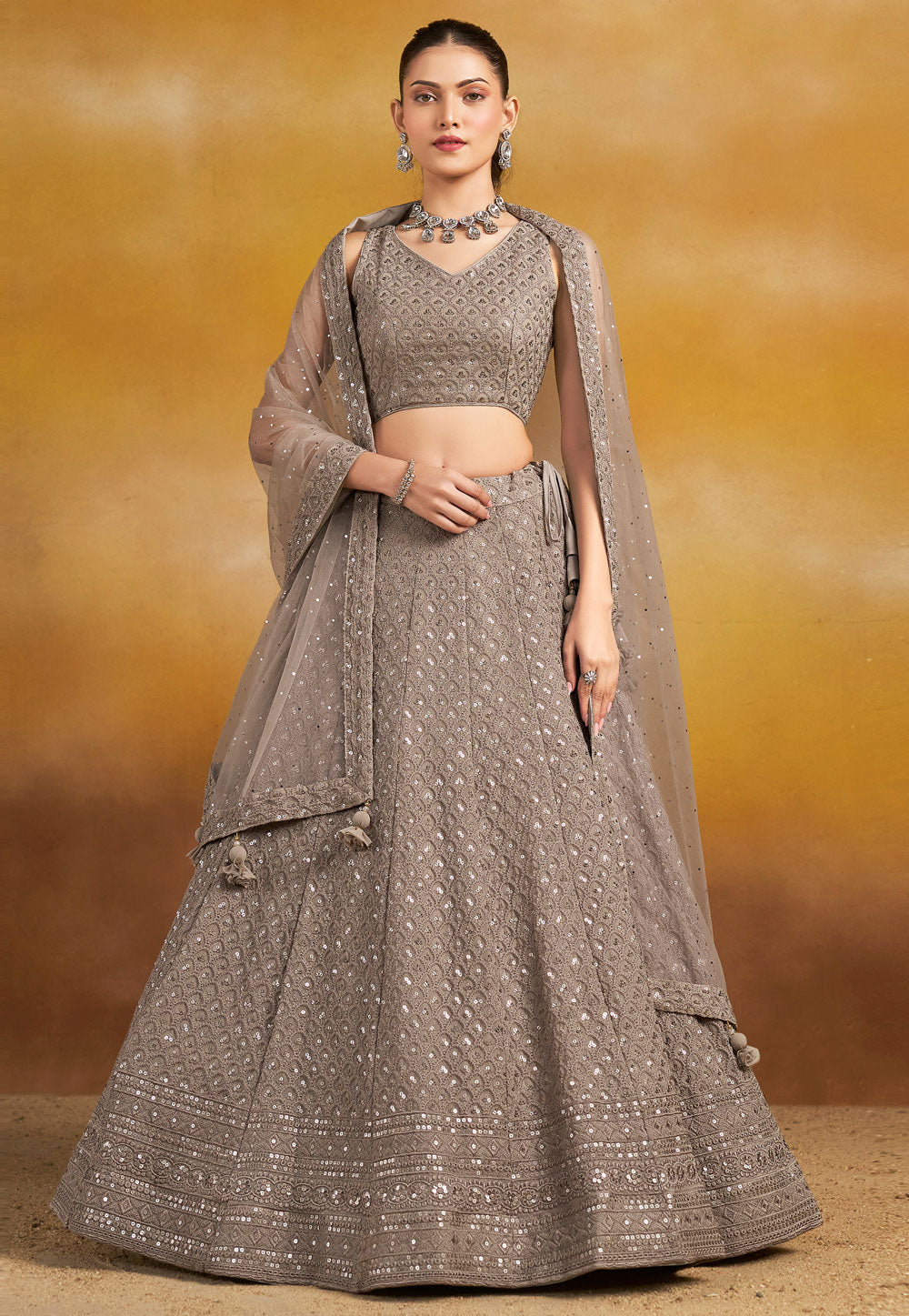 Purple Chinon Silk Jacket Style Lehenga Choli