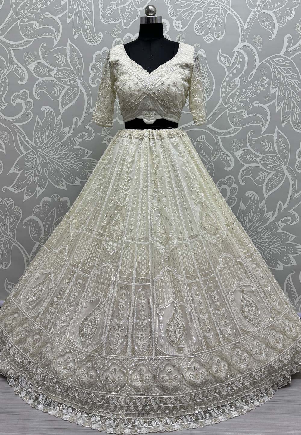 Off White Net Wedding Lehenga Choli