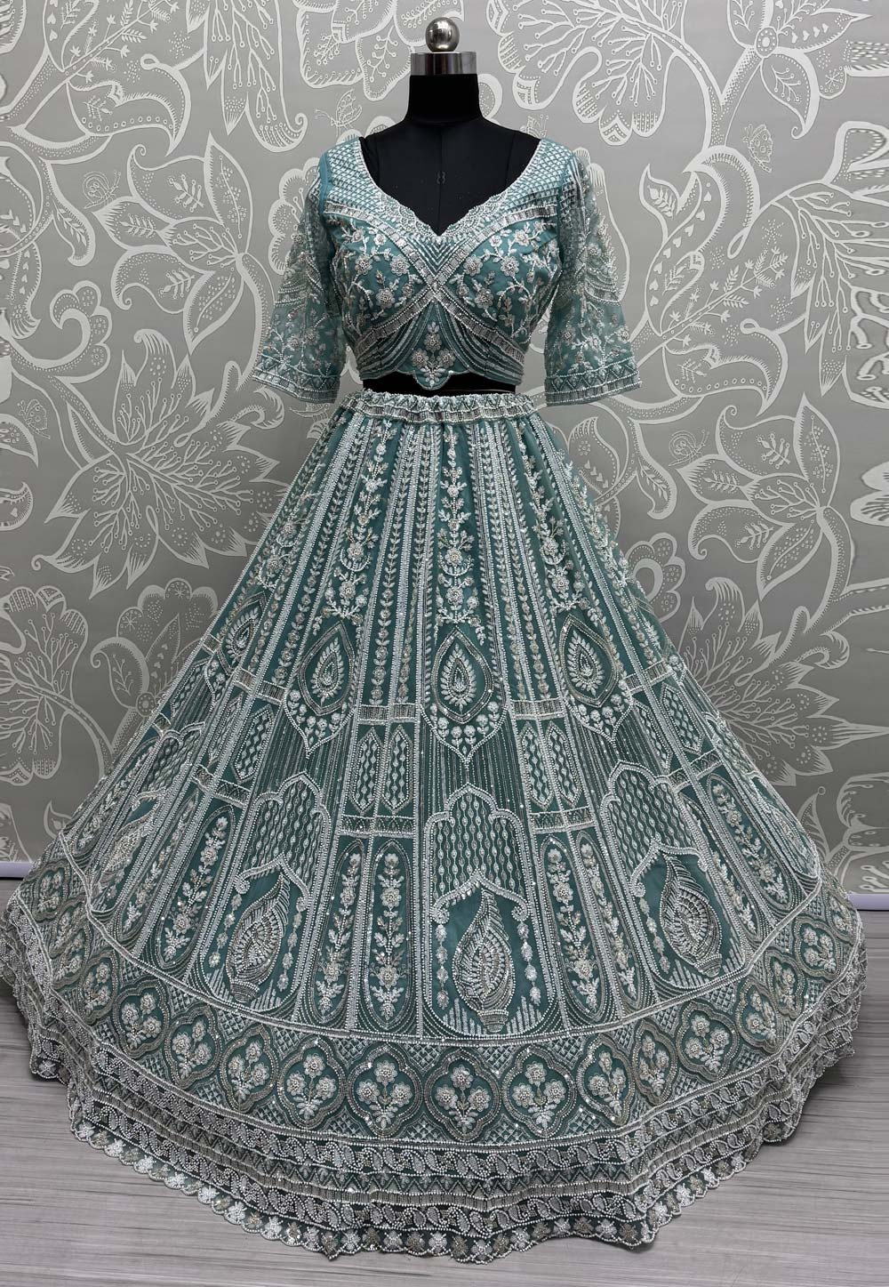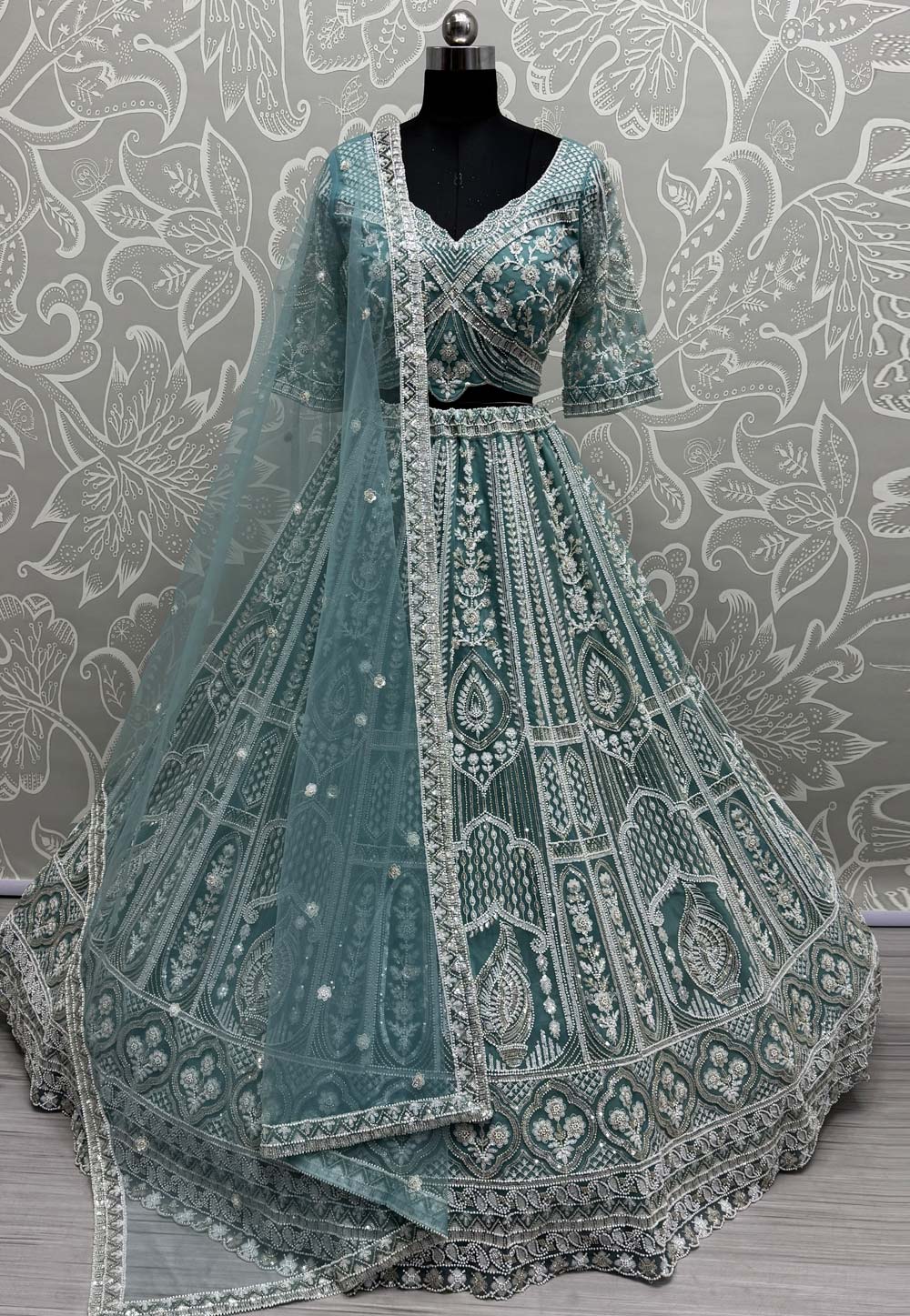 Sky Blue Net Wedding Lehenga Choli