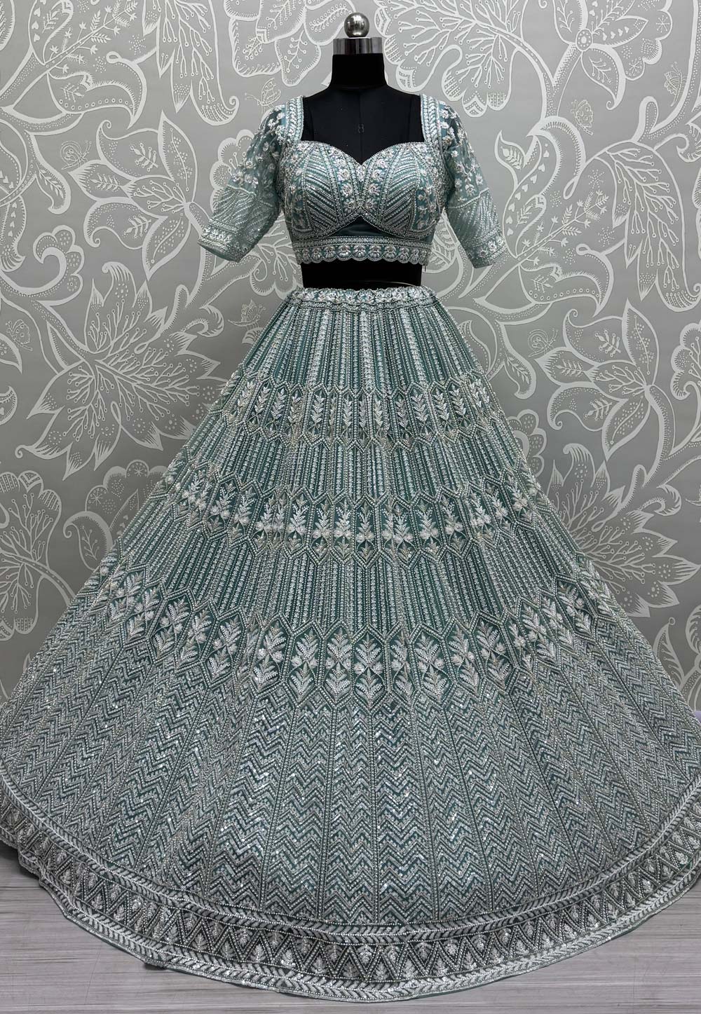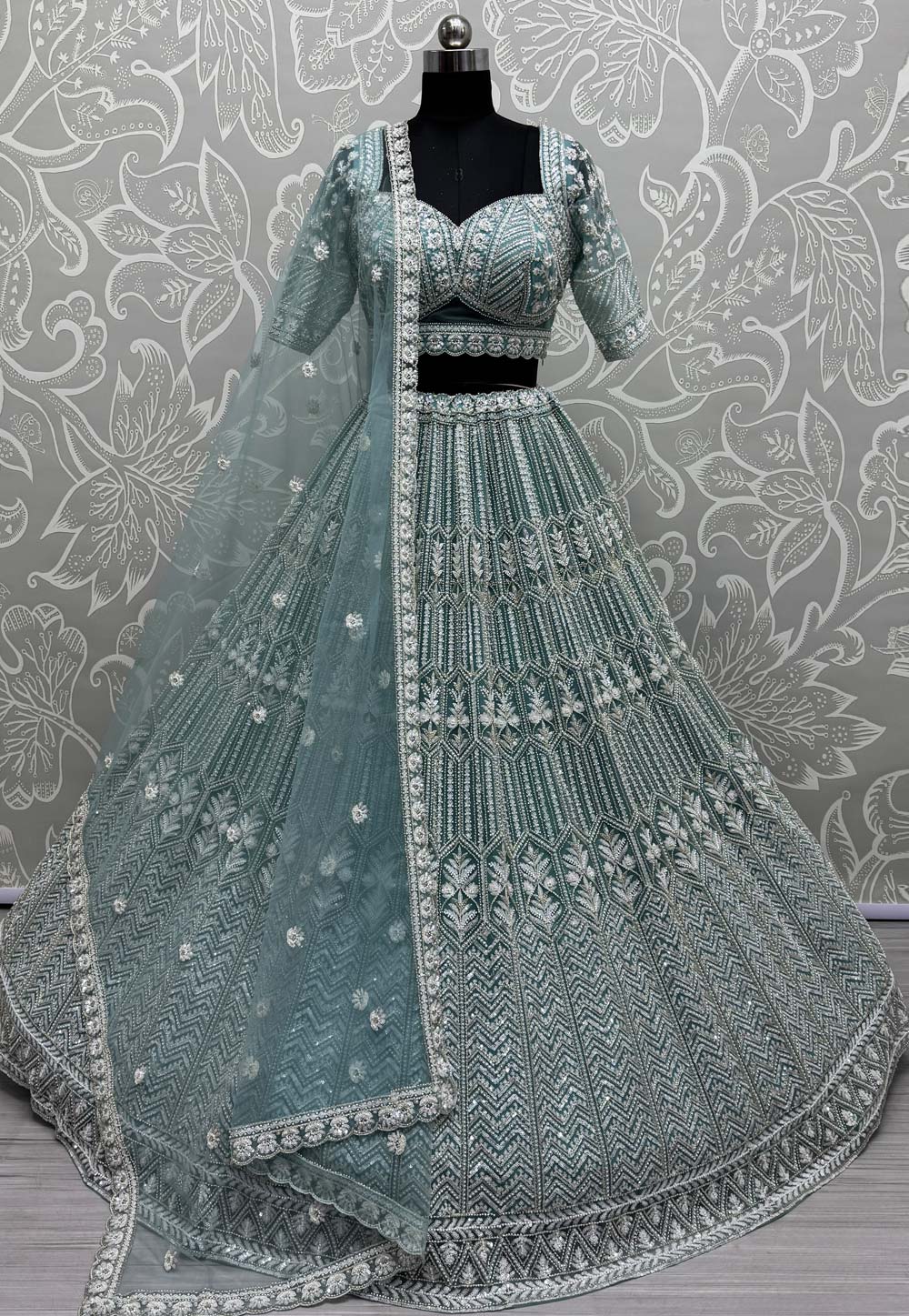 Grey Net Wedding Lehenga Choli