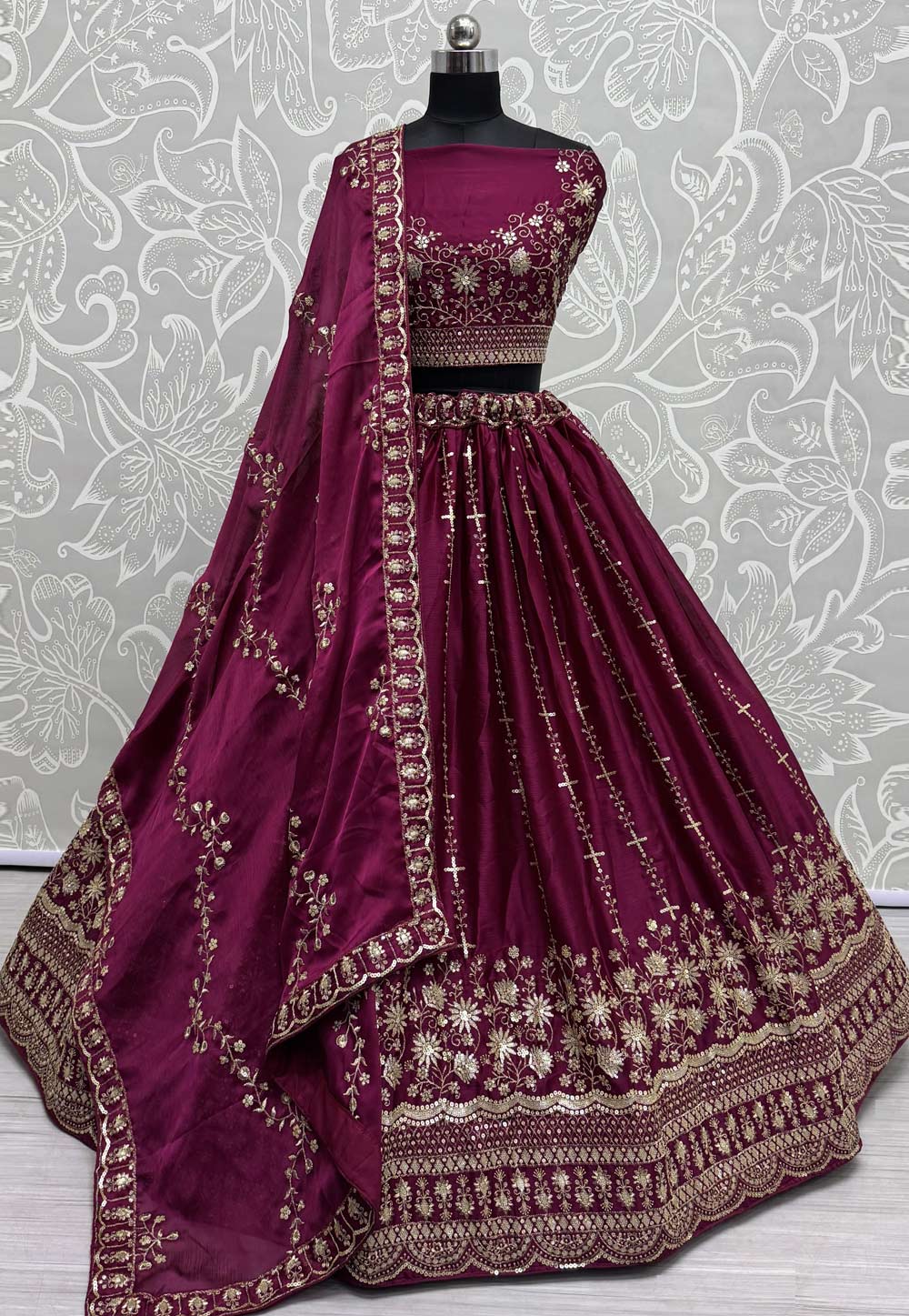 Magenta Satin Chiffon Wedding Lehenga Choli