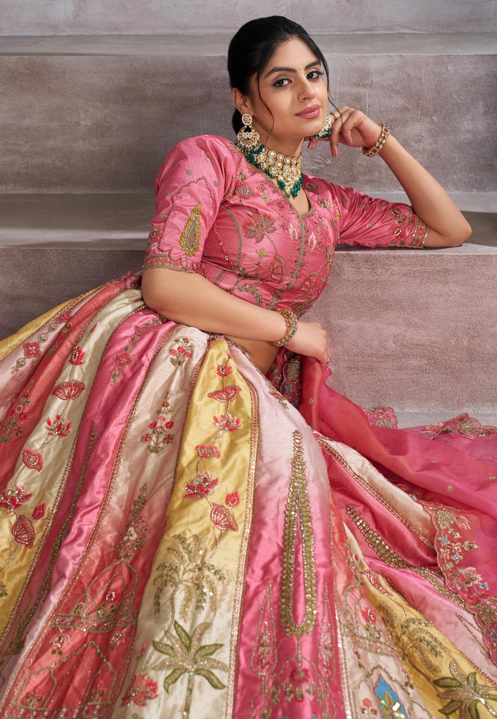 Multicolor Silk Wedding Lehenga Choli